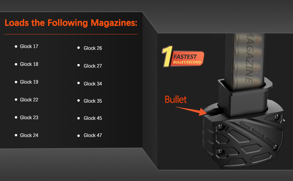 Only 2 steps to complete the loading when you insert the magazine into the loader.Made of superior polymer materials, sturdy and durable. It has good heat, and scratch resistance.